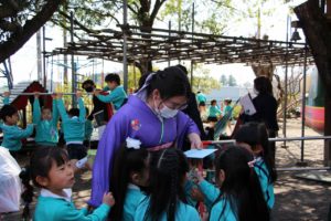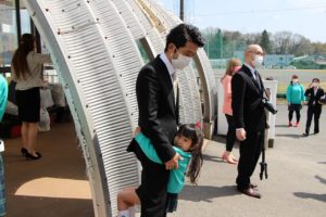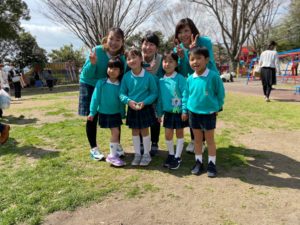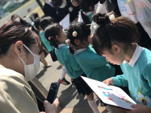 コロナ禍で、教室でのお別れはゆっくりできませんが、いっぱい遊んだ大好きな園庭で、写真を撮ったり先生とお話したりのひとときを過ごしました。