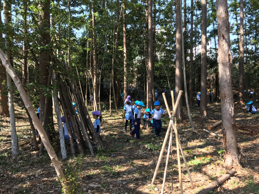 自分達で創り上げる楽しさと自然と四季を感じられる森の中で、子供達の五感が研ぎ澄まされ、想像力と創造力が培われます。