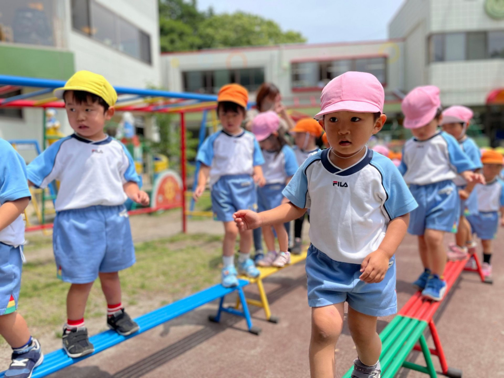卒園するまでに「全員逆上がりができるようになろう!」という目標をたて、発達に応じた毎朝のサーキット活動をとおして、全身運動をおこなっています。