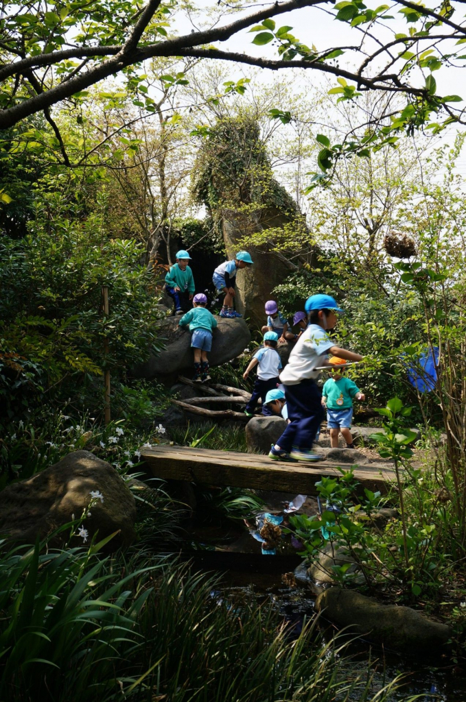 森の中で様々な動植物を観察したり、そこから想像したり、実際に創造したり、子供達の目がキラキラとそして心がワクワクするわんぱくの森。